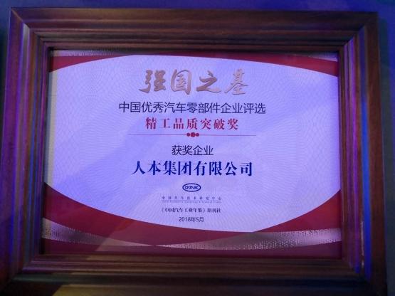 “他們秉承大國工匠精神,全力打造基礎部件與裝備的高端配套。精益求精、不懈創(chuàng)新、篤實專注,筑就精工。他們努力推進中國汽車制造的‘品質革命’,用精工品質托起冉冉上升的汽車強國夢。”這是5月31日在西安舉行的“強國之基—中國優(yōu)秀汽車零部件企業(yè)”頒獎典禮上,組委會給人本集團頒發(fā)“強國之基——精工品質突破獎”時,賦予的“頒獎詞”。