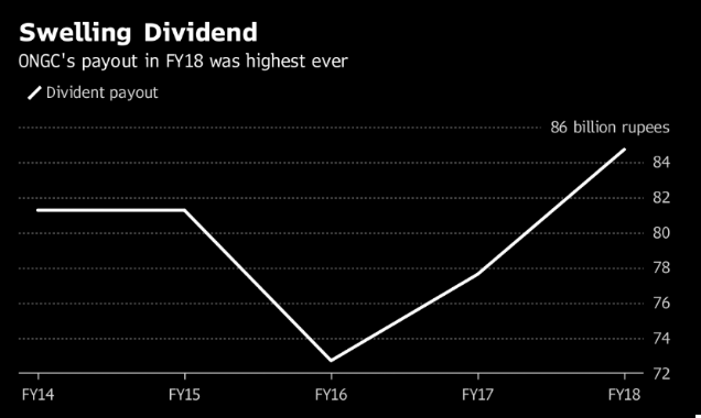 ONGC最大的股東總理Narendra Modi的政府一直在攻打包括印度最大的能源探險家在內(nèi)的國有公司,以彌補其財政赤字。在這個公司被命令增加投資以幫助削減美國原油進口量的時候,這使該公司的資金枯竭。ONGC上個財政年度支付了4260億盧比作為政府的股息,并購買其在煉油廠的股份。
