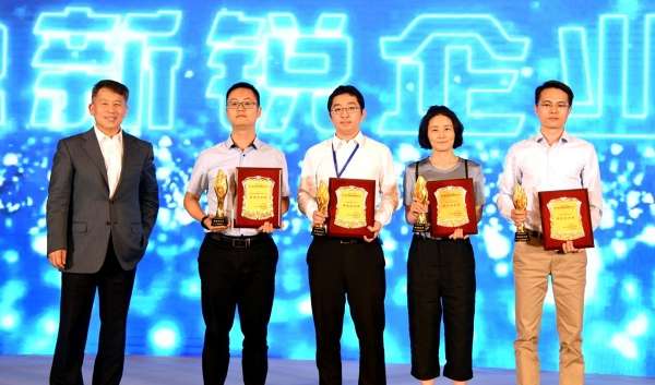 企業(yè)代表上臺領取金融新銳企業(yè)獎現(xiàn)場照
