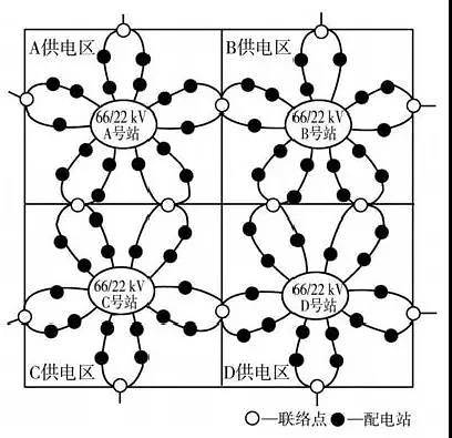 圖1.新加坡22千伏中壓配電網(wǎng)花瓣式接線