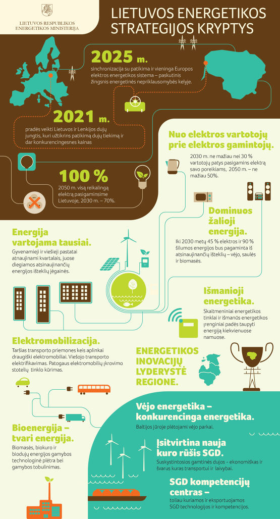 更新后的戰略預計到2030年 45%耗電量甚至達到90%。熱能將由可再生能源產生。2050年 立陶宛消耗的所有電力和熱量將來自可再生能源和其他非危險源。可再生能源將達到80%。立陶宛消耗的所有能源。