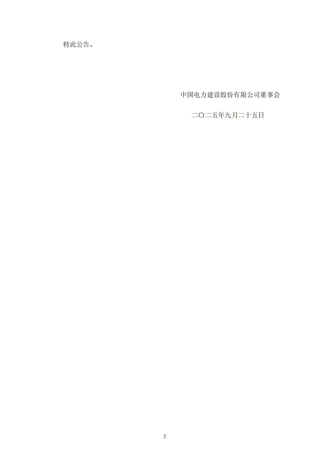 王斌辭去中國電力建設股份有限公司董事、副董事長兼總經理職務