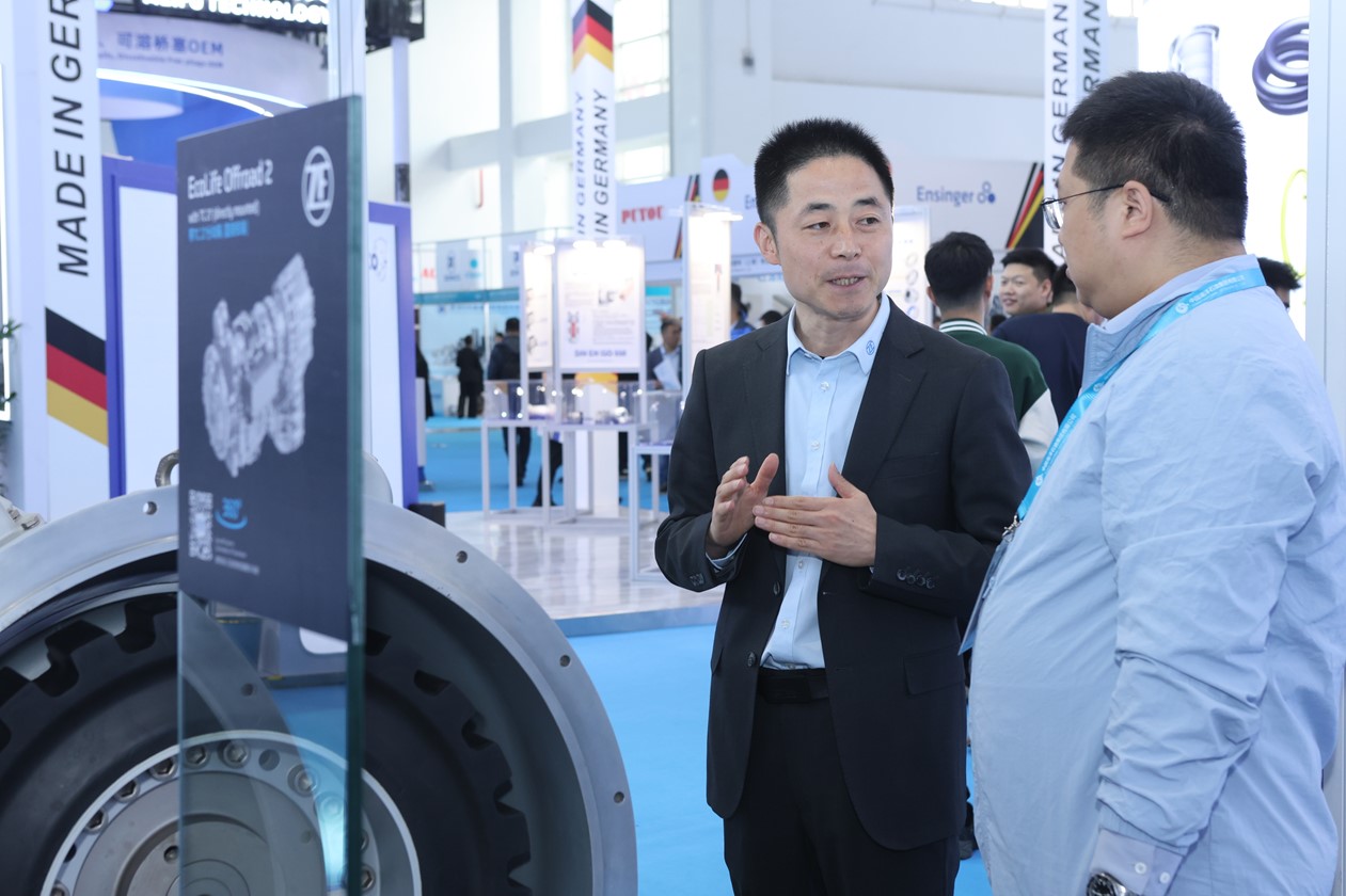 采埃孚工業技術事業部物料搬運系統和特種傳動中國區負責人林振國、應用經理朱小鋒在2026北京石油展現場接受媒體專訪