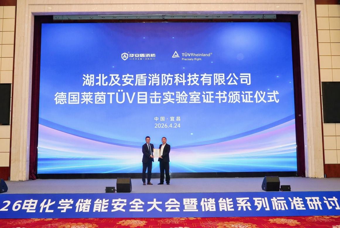 2026年4月24日,為期2天的2026電化學儲能安全大會暨儲能系列標準交流會在湖北宜昌圓滿落幕。大會由中國建筑標準設計研究院有限公司(以下簡稱標準院)主辦,湖北及安盾消防科技有限公司(以下簡稱及安盾消防)承辦,以智馭儲能,安全護航為主題,匯聚產、學、研、用等各界力量,參會人員近300人。與會各方圍繞新國標落地實施、儲能消防技術創新、標準圖集體系建設以及工程應用協同等核心議題展開深入交流,為我國新型電力系統下的儲能行業高質量發展...