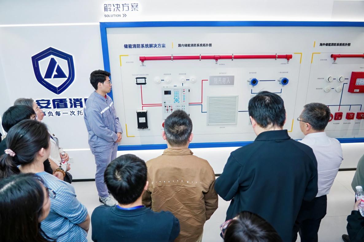 此外,與會代表還參觀了及安盾消防科技園,實地考察了園區智能生產制造、質量檢測、研發試驗,以及二期重點在建項目大規?;馃龑嶒炇?,該項目將為儲能系統安全設計優化與消防策略提升提供科學數據支撐。