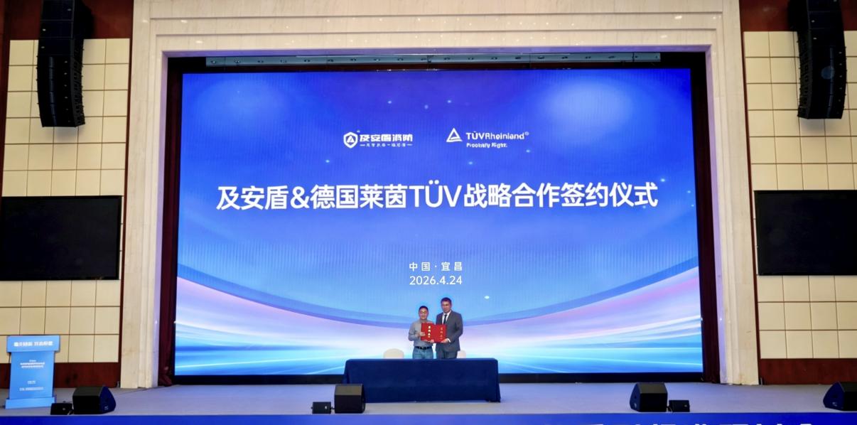 作為本次大會的承辦方,及安盾消防展示了其在熱氣溶膠消防領域的領先實力。會議期間,及安盾消防與德國萊茵TÜV、SGS、儲安熱控、Intertek四家國際領先的檢測認證機構分別簽署戰略合作協議。各方將圍繞儲能電池全層級安全測試驗證、儲能消防產品檢測認證、消防標準研究與合規評審、技術交流及專業人才培養等開展深度合作,共同推進儲能安全技術研究與產品合規能力提升。
