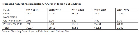 到2021年至22年,預計這種混合物將發生重大變化,其中私營合資企業占最大塊--40.3億立方米 - 其次是ONGC的產量為27.8億立方米,而石油產量為37億立方米天然氣。