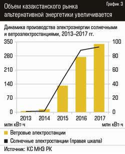 據(jù)NEM RK統(tǒng)計(jì)委員會(huì),在過去十年可再生能源發(fā)電的總體比例為8-12%(見。圖1)。高利率相比,在過渡到“綠色”經(jīng)濟(jì)的概念,指出 - 的統(tǒng)計(jì)數(shù)據(jù)的匯總水,風(fēng)和太陽的能量,只是在最大的水電占幾乎全部來自可再生能源(參見圖2)的電力的功能的結(jié)果。憑心而論,應(yīng)該指出的是,風(fēng)力發(fā)電和太陽能發(fā)電在國內(nèi)有了很大的發(fā)展,在過去幾年中(參見圖3)。只有在2017年,根據(jù)“電力能源和電力市場(chǎng)的運(yùn)作報(bào)告,”哈薩克斯坦電力協(xié)會(huì),在風(fēng)力發(fā)電量達(dá)23.5%,產(chǎn)量的增加,這也讓他們采取的0股,占該國總發(fā)電量的3%。太陽能發(fā)電廠的產(chǎn)量增加 - 占2017年太陽能總發(fā)電量的4%,占0.1%。事實(shí)證明,太陽和風(fēng)的總份額僅占該國總發(fā)電量的0.4%,為了實(shí)現(xiàn)這一概念的目標(biāo),共和國需要增加可再生能源的數(shù)量。在國家支持替代能源的條件下,這項(xiàng)任務(wù)看起來非常可行。