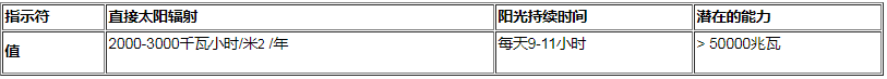 表26:埃及太陽能潛力指標