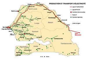 有兩個(gè)電網(wǎng)系統(tǒng):90千伏國(guó)家電網(wǎng)和225千伏超國(guó)家電網(wǎng),總計(jì)約13,000公里。兩者均由SENELEC管理。該網(wǎng)格主要為達(dá)喀爾,提斯,圣路易斯和考拉克/法蒂克周圍的城市供電。但是有幾個(gè)孤立的網(wǎng)絡(luò)可以為某些偏遠(yuǎn)地區(qū)供電。