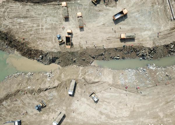 9月22日,在巴基斯坦旁遮普省卡洛特地區(qū),卡洛特水電站項目準(zhǔn)備進行大江截流作業(yè)。 新華社記者劉天攝