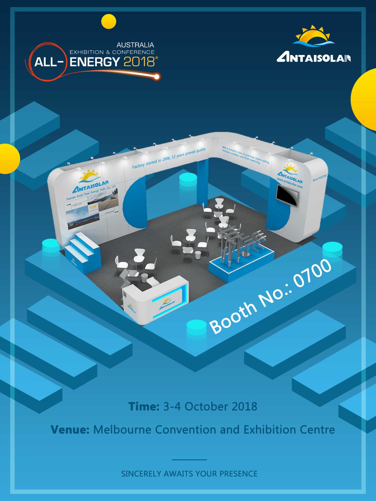 澳大利亞全能源展覽會(huì)all-energy是澳洲規(guī)模最大且專業(yè)的可再生能源展會(huì),涵蓋所有新能源產(chǎn)業(yè),涉及范圍廣,影響力大。屆時(shí),全球知名新能源行業(yè)廠家,齊聚一堂,共同探討澳洲能源發(fā)展趨勢(shì)及新技術(shù)的發(fā)展。福建安泰新能源也誠(chéng)邀您蒞臨我們的展位0700,共鑒鋁材品質(zhì)!