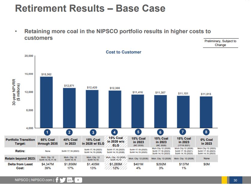 該公用事業公司表示,該計劃將為客戶節省43億美元,而不是在2035年之前運營這些工廠。該公用事業公司今年早些時候在密歇根湖的Bailly發電站退役了兩個燃煤機組。