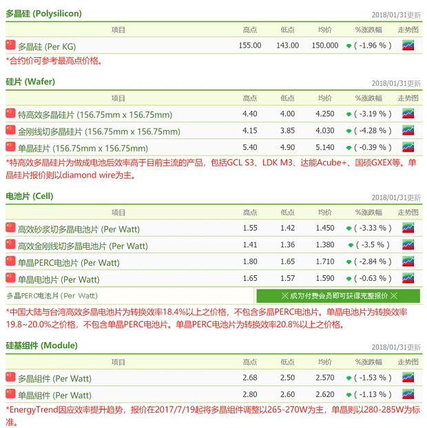 2018年2月4日報道了單多晶硅片的降價消息。上游的連續(xù)降價將慢慢傳導到終端。