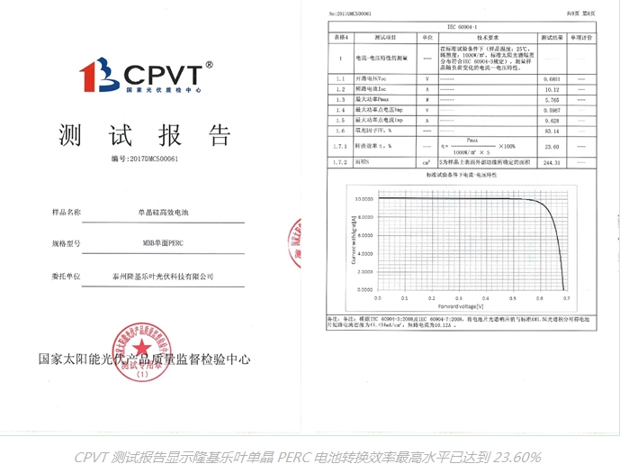 2018年2月28日,日本國際太陽能光伏展覽會PV EXPO在東京舉辦,隆基樂葉在展會現場召開新聞發布會,正式對外宣布,經中國國家太陽能光伏產品質量監督檢驗中心(CPVT)測試認證,其單晶PERC電池轉化效率最高已達到23.6%,再次成為新世界紀錄保持者。