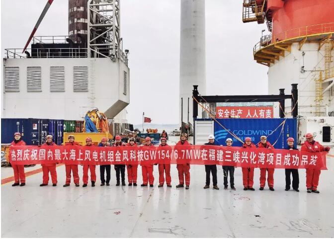 2018年2月,由新疆金風(fēng)科技股份有限公司(下稱“金風(fēng)科技”)自主開發(fā)的GW154/6700海上風(fēng)力發(fā)電機(jī)組,在福建省重點項目——福建三峽興化灣海上試驗風(fēng)電場順利完成安裝。該機(jī)組系目前國內(nèi)最大容量海上風(fēng)電機(jī)組,已獲得機(jī)組設(shè)計認(rèn)證和臺風(fēng)適應(yīng)性認(rèn)證。