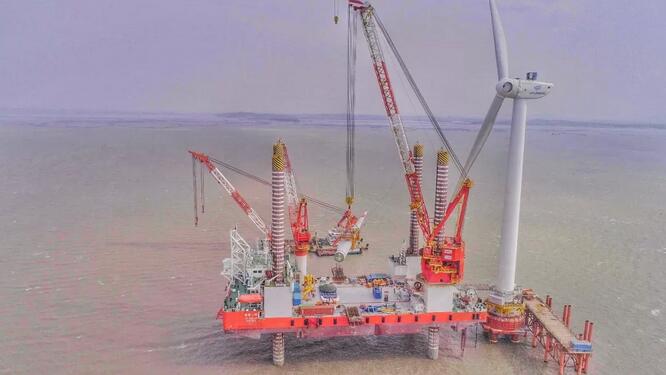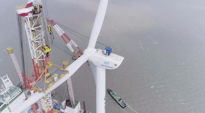 GW154/6700機(jī)型的成功吊裝,為項目后續(xù)工程順利開展奠定堅實基礎(chǔ),不僅標(biāo)志金風(fēng)科技大容量海上風(fēng)電裝備的產(chǎn)業(yè)化邁出堅實步伐,也意味著我國海上風(fēng)電正式開啟“大容量”機(jī)型國產(chǎn)化時代。