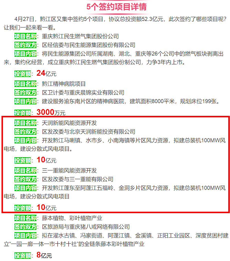 區(qū)級部門代表與各企業(yè)簽訂合作協(xié)議。據(jù)了解,5個集中簽約項目為成立重慶黔江民生燃氣集團股份公司、建設黔江區(qū)精神病院、天潤新能風能資源開發(fā)、三一重能風能資源開發(fā)、發(fā)展藤本植物彩葉植物產(chǎn)業(yè)。