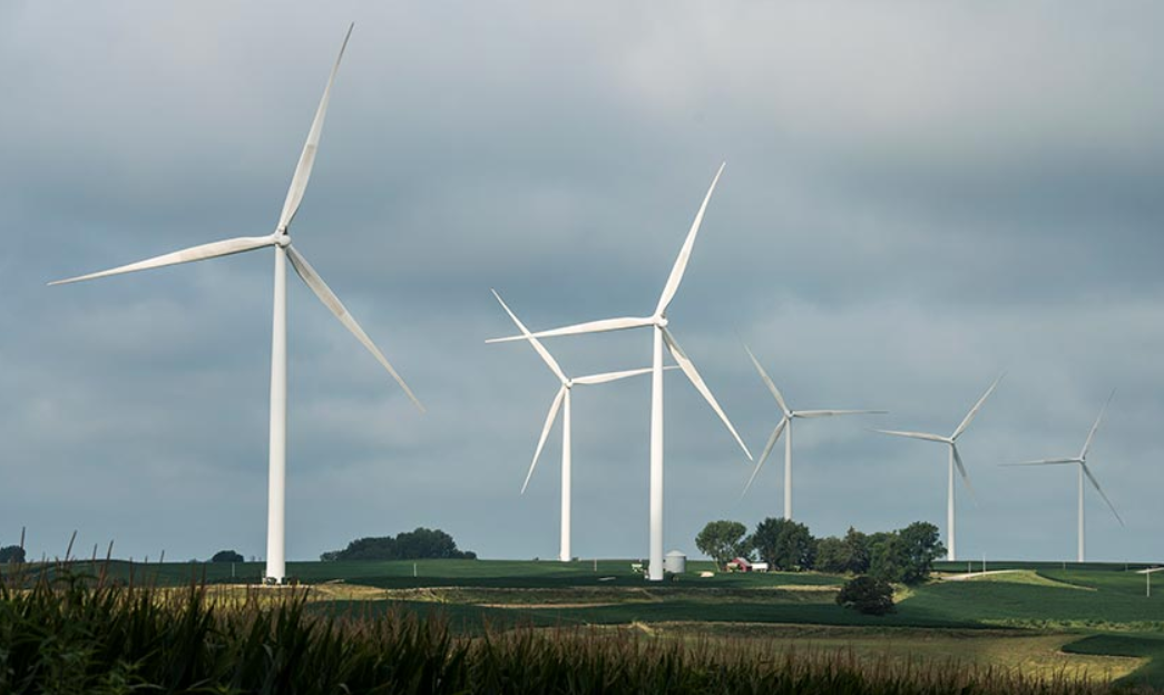 愛荷華州的這家酒店將風力渦輪機延伸到地平線上。美國國家可再生能源實驗室正在提供海量數據,以幫助確定風機的安裝位置,例如愛荷華州的風機。(Dennis Schroeder攝/ NREL)