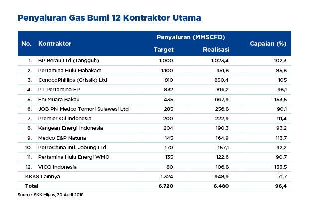 還有一個Grissik有限公司康菲,埃尼穆阿拉巴高,總理油印尼的Medco E&P納土納,以及維科Indonesia.Capaian 提升在總其他合約氣體是其1324 MMSCFD的目標的948.9 MMSCFD。